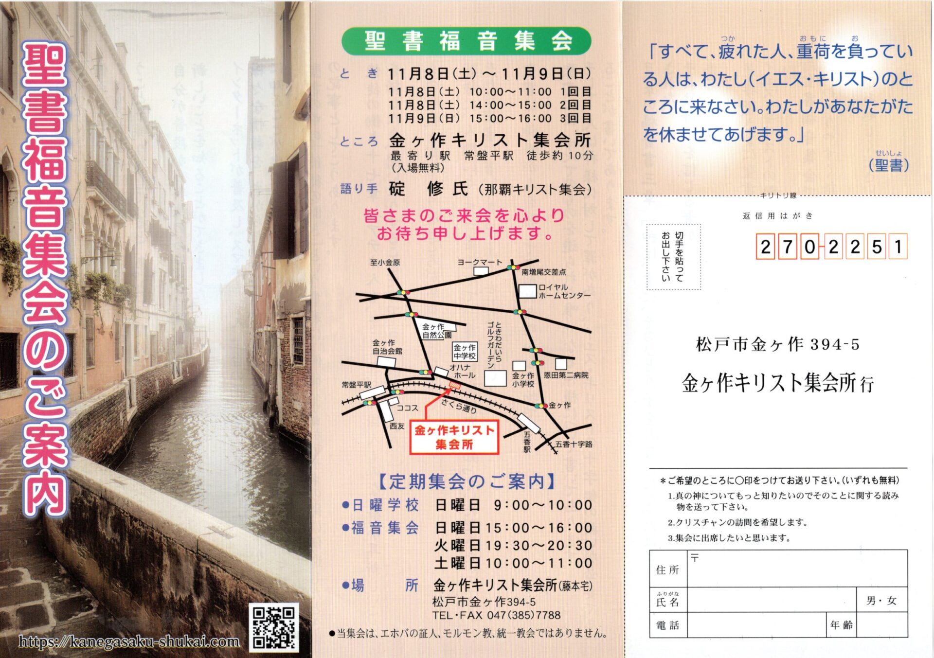 どなたでもご自由にお越しください。 献金等は一切不要です。